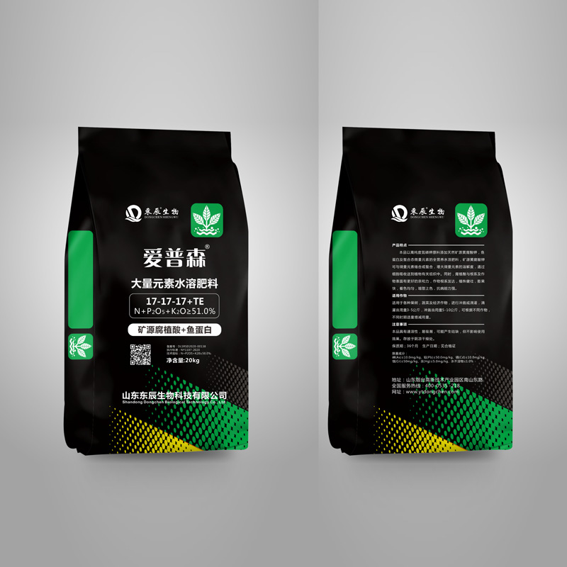 本品以高纯度氮磷钾原料添加天然矿源黄腐酸钾,鱼蛋白及螯合态微量元素的全营养水溶肥料,矿源黄腐酸钾可与微量元素络合或螯合,增大微量元素的溶解度,通过细胞吸收送到植物有关组织中。同时,腐植酸与根系及作物表面有更好的亲和力,作物根系发达,植株健壮,膨果快,着色均匀,增甜上色,抗病能力强。